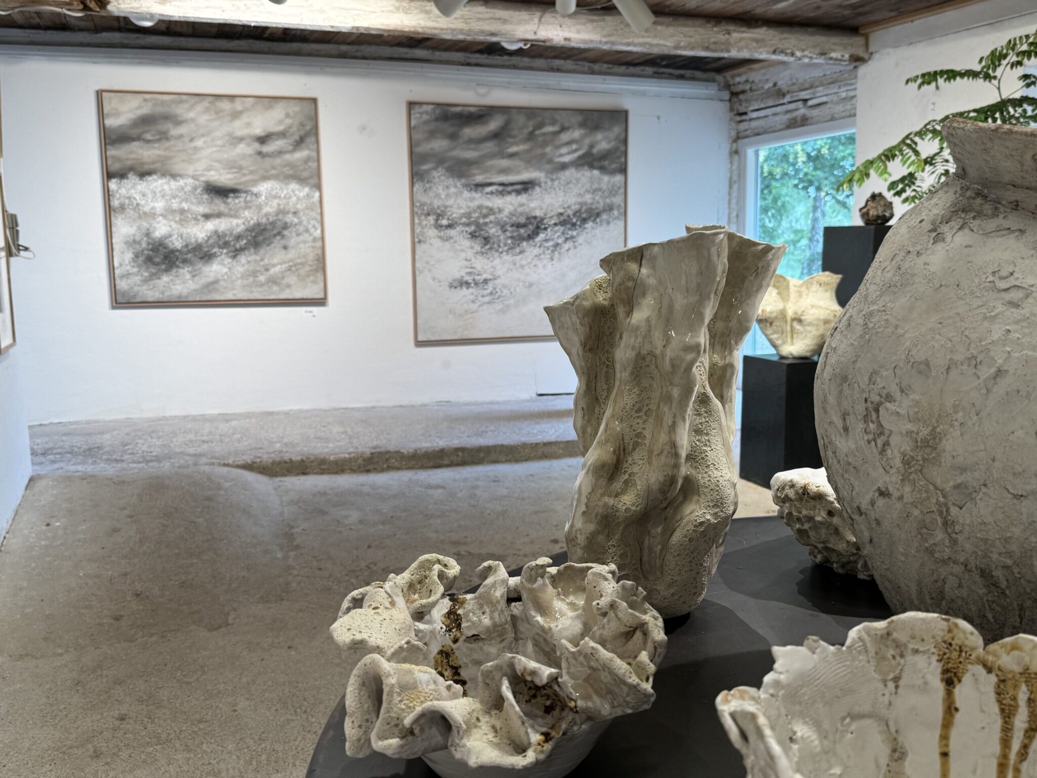 De udstillede værker repræsenterer en bred vifte af stilarter og teknikker, der tilsammen skaber en levende og unik kunstoplevelse – midt i naturens rå og poetiske rammer.